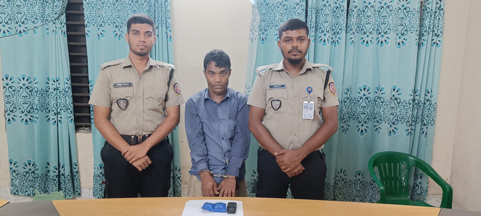 আটকের সময় তার কাছ থেকে নীল রঙের জিপারযুক্ত দুটি পলি প্যাকেটে মোট ৮০০ পিস ইয়াবা ট্যাবলেট এবং একটি বাটন মোবাইল ফোন জব্দ করা হয়।